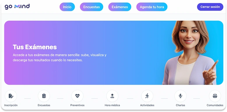Acompañar a los colaboradores en el cuidado de su salud física y emocional mejora su experiencia laboral. En GoMind integramos soluciones de salud preventiva para ofrecer un cuidado continuo, cercano y personalizado para cada persona.